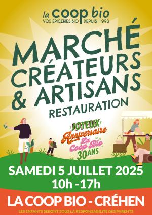 Un marché de créateurs & artisans le samedi 5 juillet de 10h à 17h sur le parking du magasin La Coop Bio de Créhen