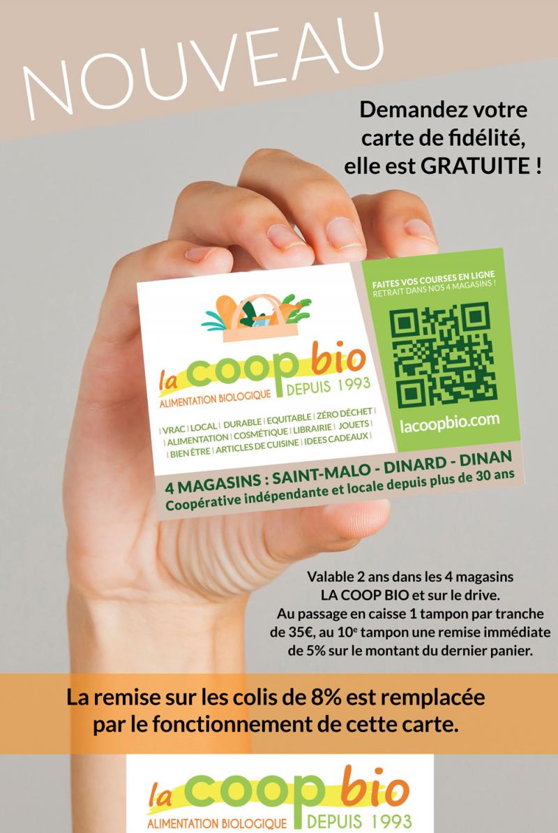 Valable 2 ans dans les 4 magasins LA COOP BIO et sur le drive.