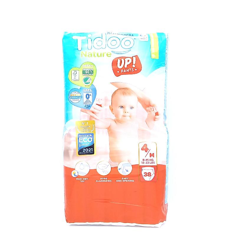 Les Couches Jetables Écologiques Tidoo préservent, de jour comme de nuit pendant 12H. Elles s’enfilent et s’enlèvent comme une culotte, et sont idéales pour l’apprentissage de la propreté de bébé.Testées dermatologiquement, les couches jetables Tidoo sont non irritantes et protègent toutes les peaux de bébé, mêmes les plus sensibles. Les couches Tidoo sont des couches fabriqué en France, elles préservent l'environnement en utilisant des matières biodégradables. Tidoo est une marque de couche française de confiance pour parents exigeants. Ils ont retiré tous les éléments présentant un risque pour le bébé : le chlore, les OGM, les parfums, le latex, les lotions, le petrolatum. Ils font contrôler par un laboratoire indépendant 250 substances controversées et passent au crible leurs résultats par un expert indépendant. Au niveau écologique, les matelas absorbants sont composés de cellulose végétale à 60 % et le sachet à 80 % en matière recyclée. N’oublions pas pour autant l’aspect efficacité des couches, avec une notation de A et une performance mesurée de 12 heures sans fuites. La forme de la couche épouse parfaitement le bébé et un certificat d’hypoallergénicité permet d’éviter les irritations.