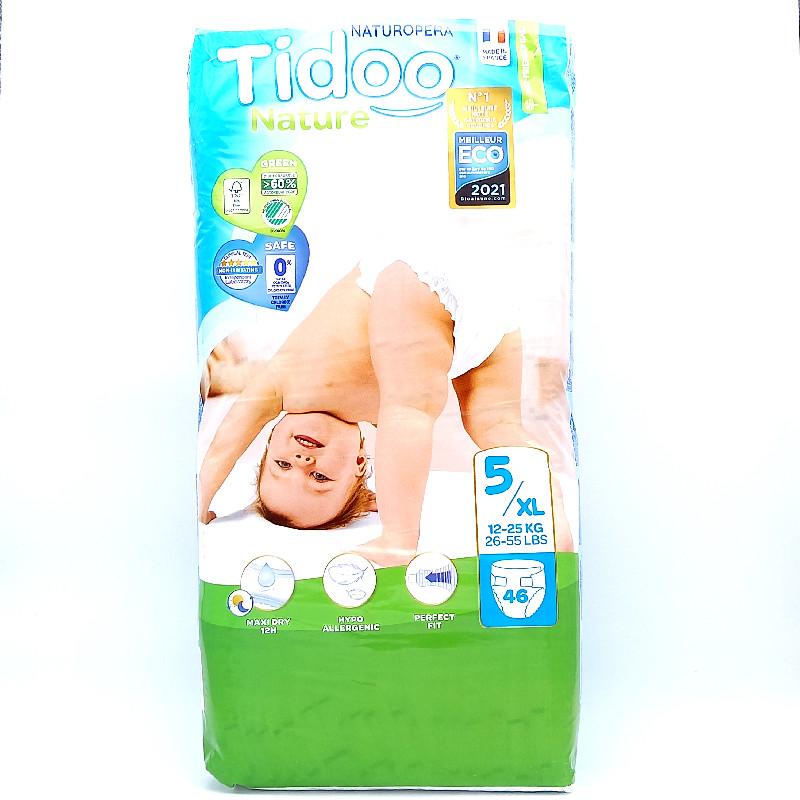 Les Couches Jetables Écologiques Tidoo préservent, de jour comme de nuit pendant 12H. Le matelas est drainé par le voile d’acquisition vers le matelas absorbant, composé de cellulose certifiée FSC, pour le piéger définitivement.Ses barrières anti-fuites latérales qui épousent les cuisses de bébé apportent une sécurité supplémentaire pour une protection anti-fuites optimale.Testées dermatologiquement, les couches jetables Tidoo sont non irritantes et protègent toutes les peaux de bébé, mêmes les plus sensibles. Les couches Tidoo sont des couches fabriqué en France, préservent l'environnement en utilisant des matières biodégradables.