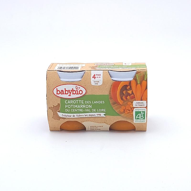 pot pour bébé à la carotte et aux potimarron, dès 4 mois. Texture lisse. 2x130 gr