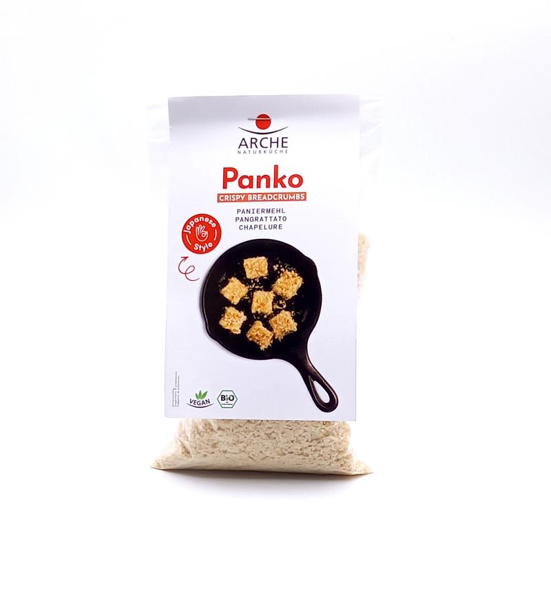 Le panko est une chapelure particulièrement croustillante et légèrement plus grossière. Elle donne aux légumes, au tofu, au tempeh, au poisson ou à la viande un croustillant particulièrement moelleux. Il donne une croûte croustillante aux plats cuisinés ou aux légumes farcis.