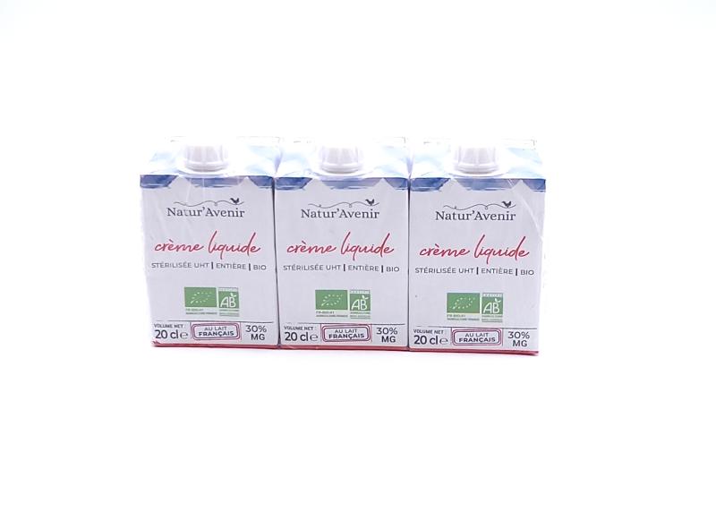 Cette crème entière liquide 30% de matières grasses, stérilisée U.H.T. est issue de l'agriculture biologique et proposée en lot de 3 briquettes Tetre Pak certifiées FSC de 20cl, avec bouchon à vis.