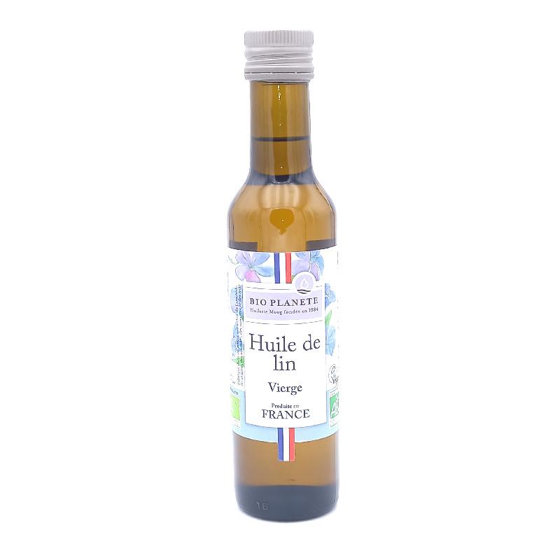 L’huile de lin est naturellement riche en acides gras alpha-linoléniques du type oméga 3. Cette huile est 100% française. Fabriquée dans un atelier qui utilise de l’arachide, du sésame et des fruits à coques.