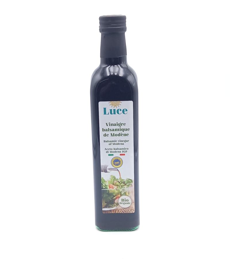 Vinaigre balsamique de Modène. Aceto balsamico di Modena IGP. Ingrédients issus de l'agriculture biologique.