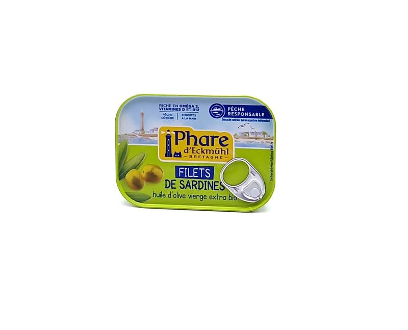 Sardines à l'huile d'olive bio La sardine des connaisseurs , généreuse, fondue dans une délicate huile d’olive vierge extra issue de l'agriculture biologique.
