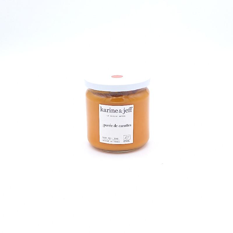 Une vraie purée de carotte, assaisonnée d'un filet d'huile d’olive et d'une pincée de sel – et sans sucre ajouté.