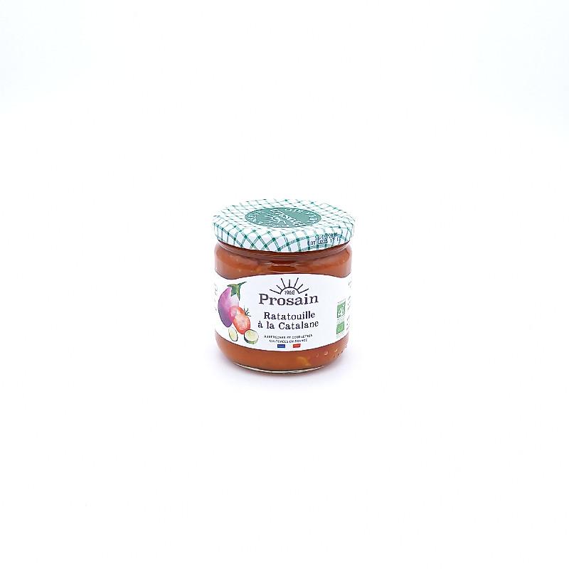 Notre Ratatouille à la Catalane bio est cuisinée avec des aubergines et des courgettes fondantes, doucement mijotées avec de la tomate, quelques poivrons rouges, et parfumées à l’huile d’olive vierge extra. De savoureux légumes bio gorgés de soleil sélectionnés et préparés avec soin, dans une recette aux accents et aux saveurs de notre terroir des Pyrénées-Orientales.