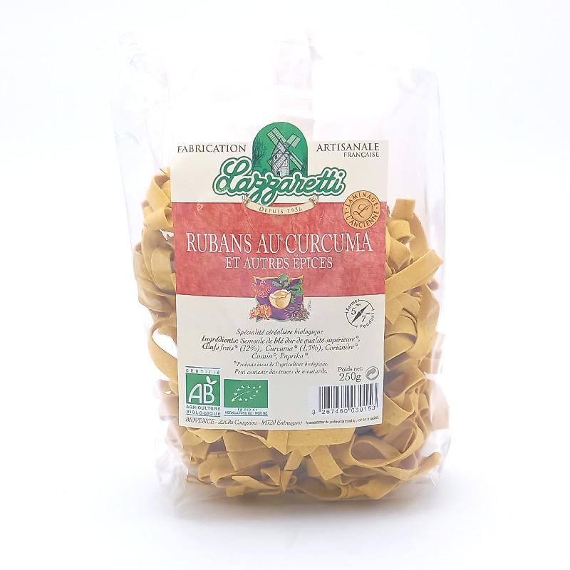 Tagliatelles de blé dur au curcuma et parfumées aux épices. Se sont des pâtes gourmandes aux œufs frais.