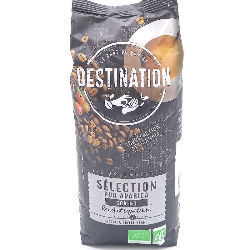 Le café en grains Sélection pur arabica de Destination est le fruit de l'assemblage de différents crus bio d'Amérique Latine, torréfiés un à un à Bordeaux selon la méthode dite "robe de moine". Rond, il offre une tasse équilibrée aux notes légèrement grillées