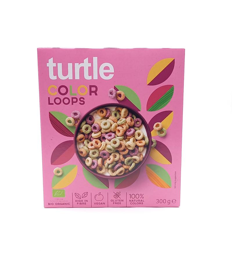Découvrez les Anneaux de céréales aux couleurs naturelles de Turtle, de délicieuses céréales croustillantes et fruitées qui vont égayer vos matinées. Elles sont colorées naturellement grâce au concentré de spiruline, radis, patate douce, citron et fleurs de carthame. Réalisées avec des ingrédients issus de l'agriculture biologique, sans huile de palme et naturellement sans gluten.