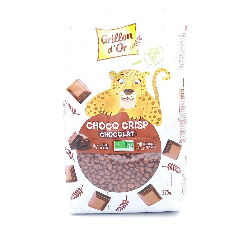 Pour tous les petits gourmands, Grillon d'Or a mis au point les Choco Crisp : un mélange de céréales croquantes bio, dominées par le riz, avec de la poudre et des pépites de cacao.