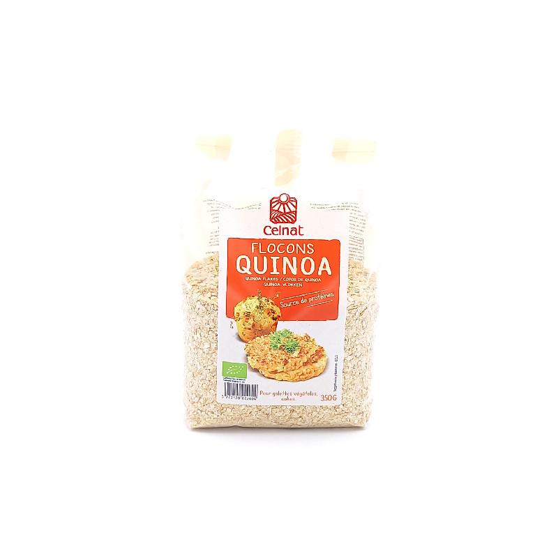 Flocons de quinoa bio - 350 g. Certifié bio. Idéal au petit-déjeuner, en accompagnement ou ajoutés aux potages, gratins et nombreuses recettes.