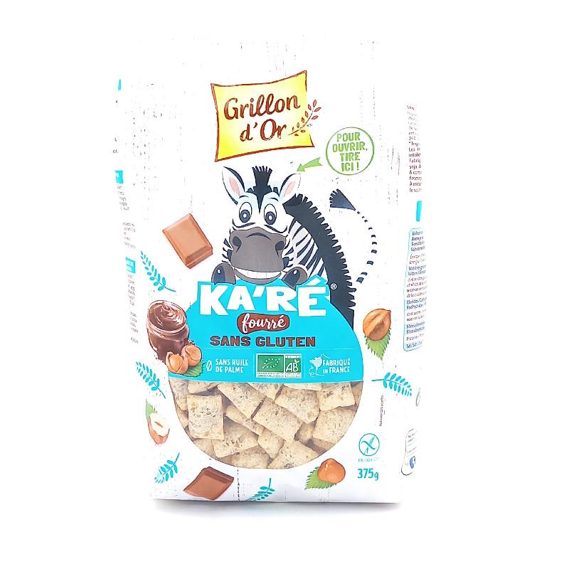 Grillon d'Or a mis au point les Ka'Ré sans gluten : des céréales de riz et de maïs croustillantes au généreux coeur chocolat noisettes pour un petit déjeuner 100% bio et sans gluten !