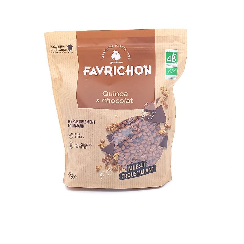 Découvrez ce délicieux muesli croustillant quinoa et chocolat bio de la marque Favrichon.