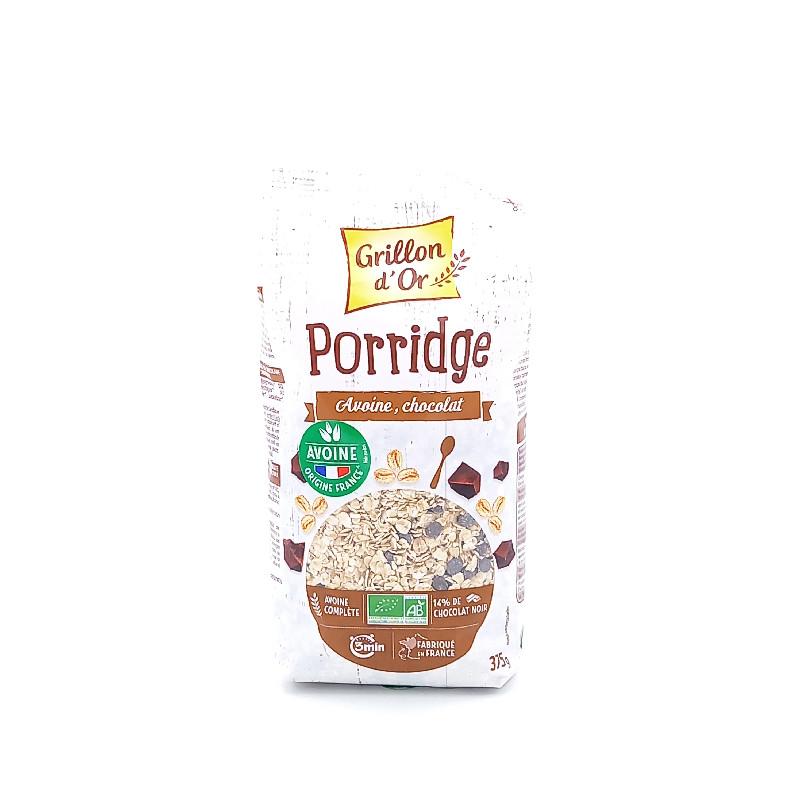 Laissez-vous tenter par le porridge Avoine et chocolat de Grillon d'Or : un porridge tout simple à base de flocons d'avoine complète généreusement réhaussés de pépites de chocolat noir à laisser fondre dans votre préparation crémeuse avant de déguster !