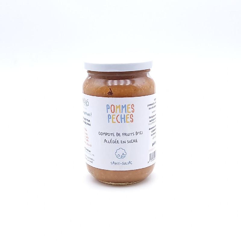 Pomme d'ici, pêche de vigne d'ici, sucre de betterave bio (de France) sucre totaux 17 gr pour 100 gr