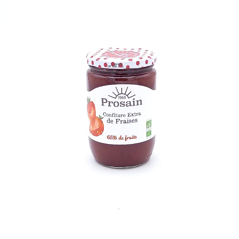 fraises*, sucre de canne* non raffiné, agent gélifiant : pectine de fruits, jus concentré de citron*. *Ingrédients issus de l'agriculture biologique. Préparée avec 65 g de fruits pour 100 g. Teneur totale en sucres: 55 g pour 100 g.
