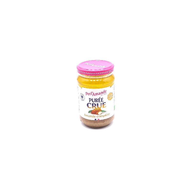 La purée d'amande complète c'est de l'amande crue, sans sucres ajoutés, broyée avec la peau et sans cuisson, qui contient des protéines végétales, des acides gras insaturés, de la vitamine E et du magnésium. Un couche superficielle d'huile d'amande contenant des nutriments se forme, mélangez avant de consommer!