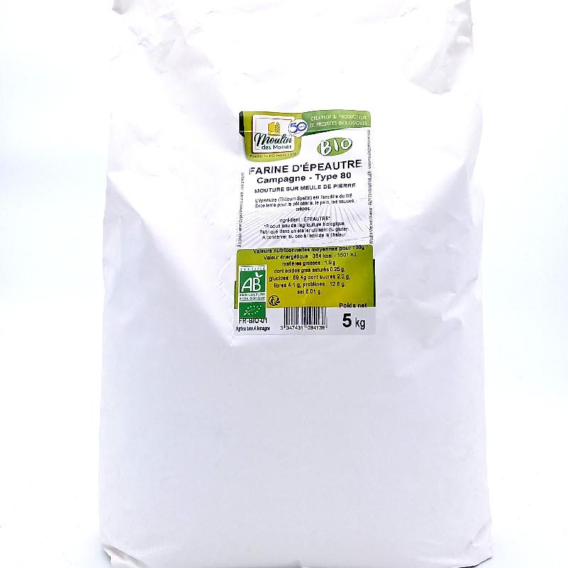 Farine d’épeautre campagne T80 issue de l'agriculture biologique.