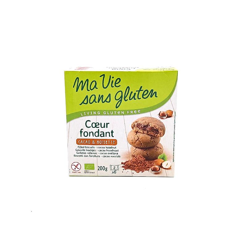 Biscuits fourrés à la crème cacao-noisette sans gluten.