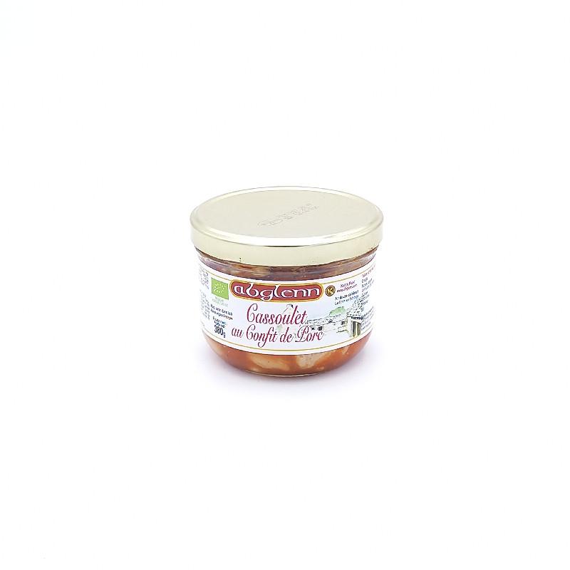 Haricots lingot*, sauce* (bouillon de porc* (eau, os et couennes de porc*, oignons*, épices*), concentré de tomate*, tomates concassées* (tomates*, jus de tomate*), sel de Guérande, sucre de canne*, oignons*, ail*, thym*, laurier*, poivre noir*), saucisse