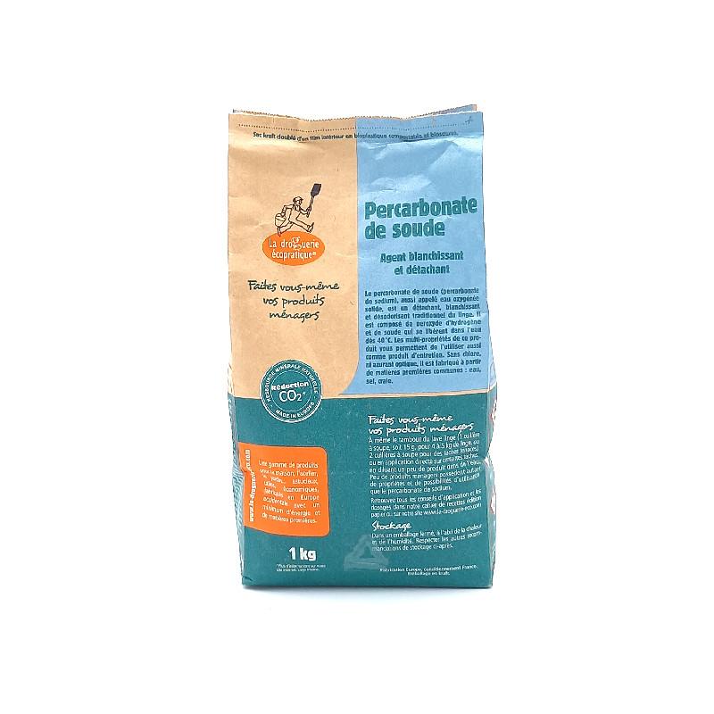 Il a fabriqué à base de carbonate de sodium (cristaux de soude) additionné de peroxyde d’hydrogène (appelé eau oxygénée). Mettre 1 à 2 cuillères à soupe de percarbonate dans le tambour de la machine à laver pour blanchir le blanc et / ou éliminer les taches colorées. Faire tourner la machine à 40°C minimum et 60°C idéalement. En cas de linge très taché, faire tremper le vêtement dans une bassine d’eau très chaude avec 2 CS de percarbonate avant le passage en machine.