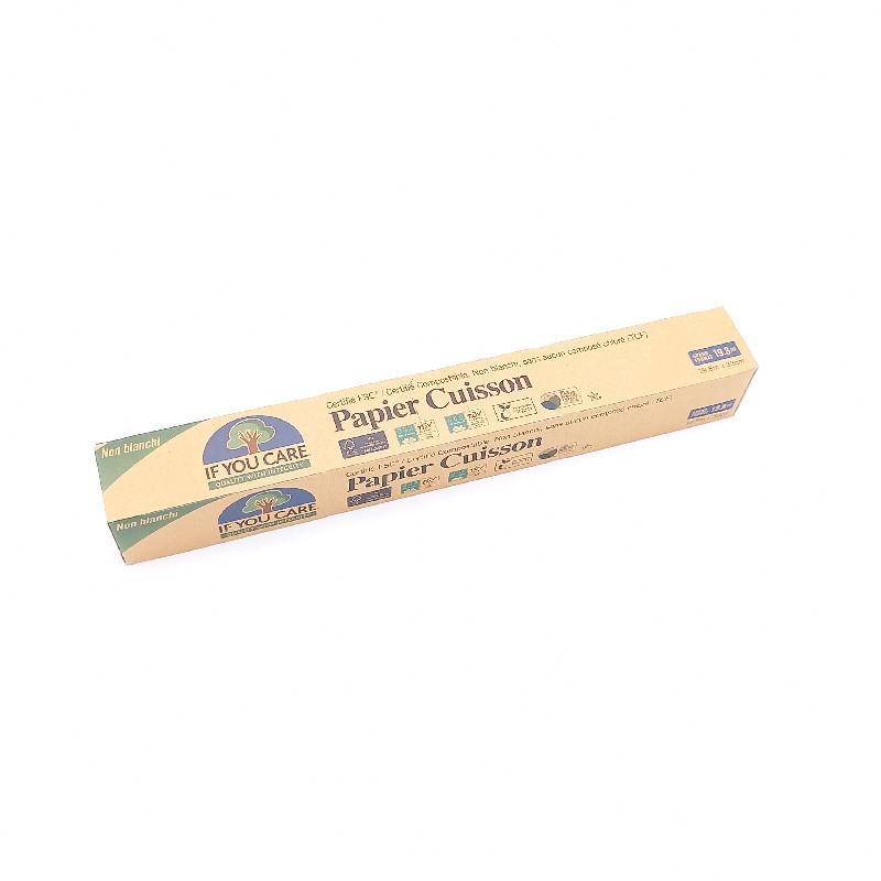 Papier microporeux pour la cuisson (jusqu'à 220°C) et la conservation des aliments. Il protège les aliments en évitant le dessèchement et la diffusion des odeurs. Dimensions : 15m x 39 cm. Intérêt écologique Ce papier cuisson est non blanchi, sans silicone, recyclable et compostable. Il est fabriqué en Europe occidentale. Conseil : apporter de la matière grasse avant d'étaler une pâte sèche (à pizza..)Le Papier Cuisson écologique If You Care est non blanchi et sans chlore. Idéal pour les pâtisseries et la cuisine.