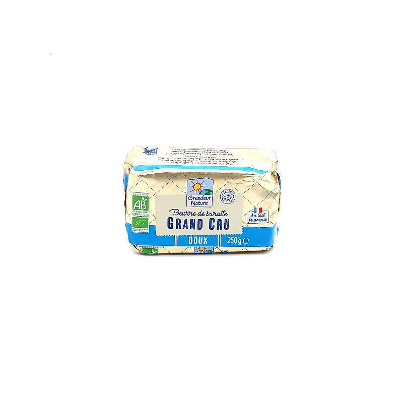 Le beurre au lait cru doux de Grandeur Nature est un véritable délice pour les amateurs de saveurs authentiques. Fabriqué à partir de lait cru issu de l’agriculture biologique, il offre une texture onctueuse et un goût riche, subtilement doux.