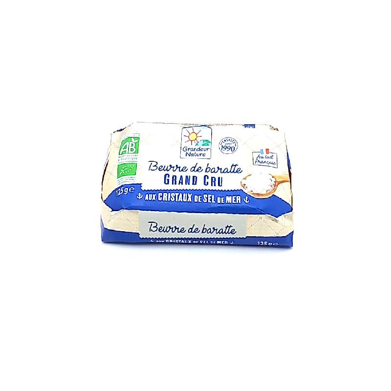 Le beurre baratte au sel de Grandeur Nature est fabriqué à partir de lait bio de haute qualité, selon un procédé artisanal qui préserve tout son goût. Avec sa texture fondante et son assaisonnement parfaitement équilibré, il est idéal pour relever vos tartines, recettes salées ou plats gourmands.