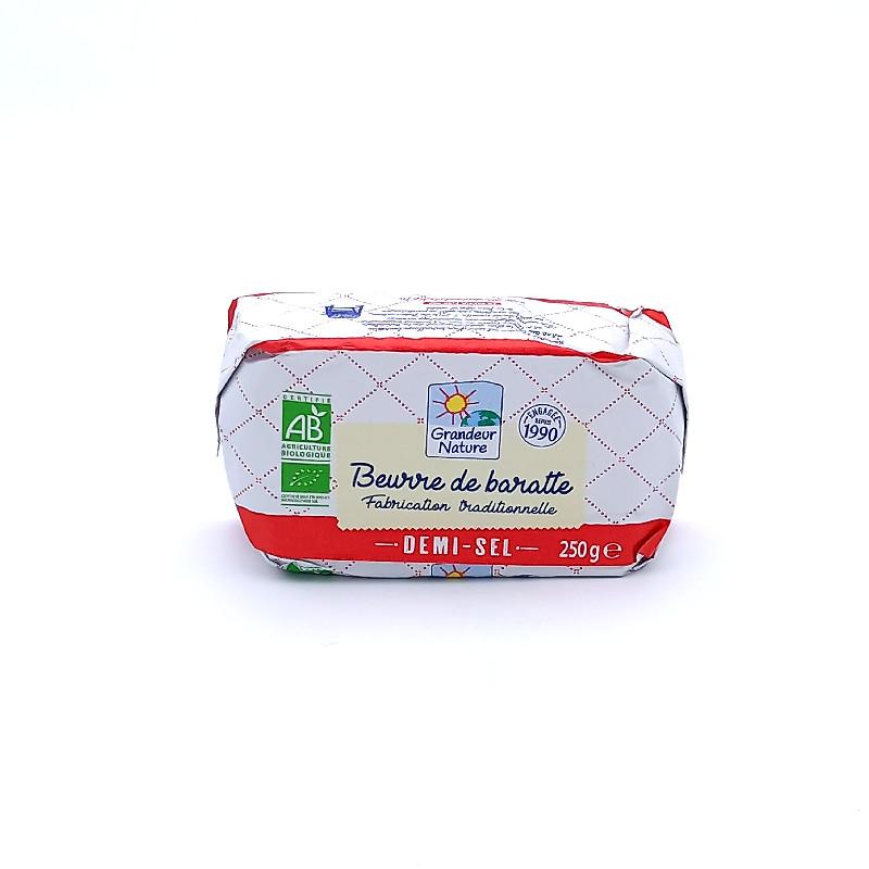 Le beurre demi-sel de Grandeur Nature est élaboré à partir de lait bio de haute qualité, offrant une texture fondante et une saveur subtilement salée. Parfait pour accompagner vos tartines, rehausser vos plats ou apporter une touche savoureuse à vos pâtisseries.