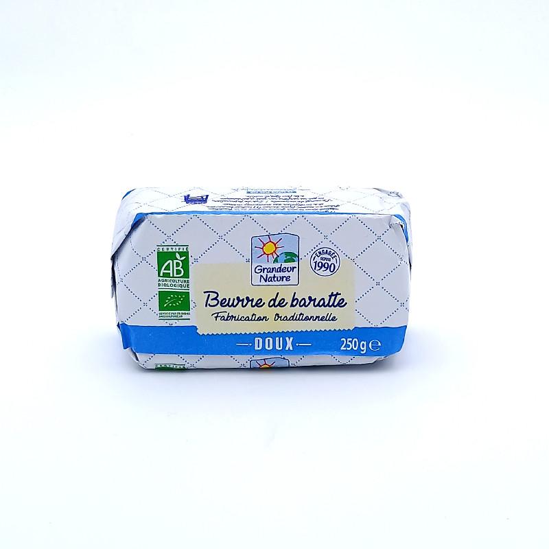 Le beurre doux de Grandeur Nature est un incontournable pour vos moments gourmands. Fabriqué à partir de lait bio de grande qualité, il offre une texture fondante et un goût délicatement crémeux, parfait pour sublimer vos tartines ou vos créations culinaires.
