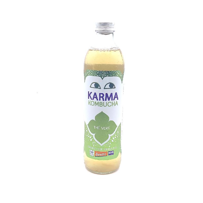 Eau, sucre de canne*, thé vert*, plantes (menthe poivrée*, citronnelle*, aspérule odorante*, zestes d’orange*, écorce de cynorrhodon*, myrte citronnée*, feuilles d’artichaut*, de fraisier*, de mûrier* et de framboisier*, achillée millefeuille*), culture de Kombucha.