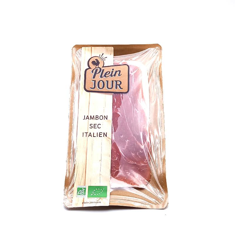 Découvrez le Jambon sec Italien en tranches de Plein Jour, le véritable jambon de Parme, issu d'une sélection de noix de jambon italienne et bio. La viande subit un salaison douce et au moins 18 mois de séchage. Vous apprécierez la finesse de ces tranches qui fondent en bouche et libèrent les arômes de ce délicieux jambon.