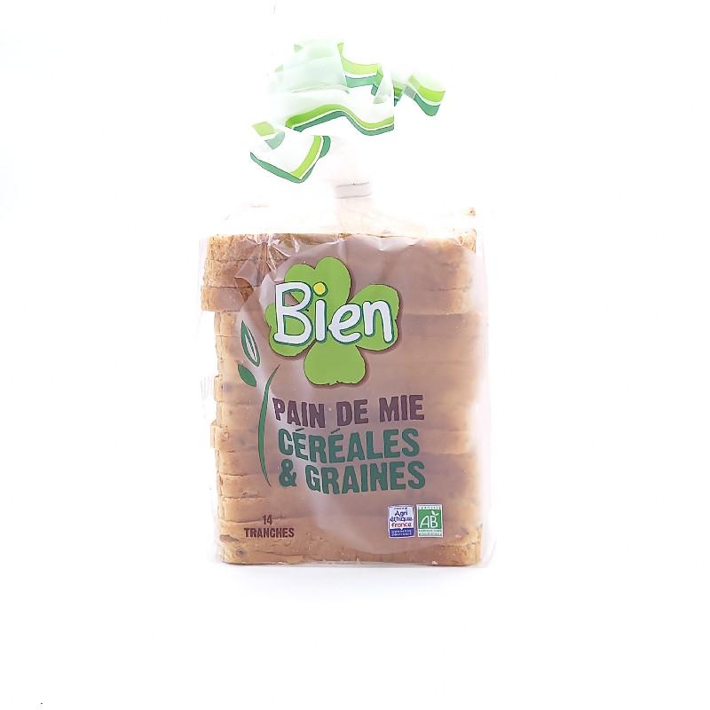 Farine de blé* 54%, eau, huile de colza*, levure, sucre de canne roux*, graines de tournesol décortiquées* 3,3%, vinaigre de cidre*, graines de lin brun* 2,7%, flocons de blé* 2,7%, farine de seigle 1,6% , graines de millet décortiquées* 1,6%, gluten de blé*, sel, farine d'orge maltée torréfiée* 0,3%, agent de traitement de la farine : acide ascorbique.