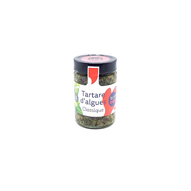 algues* 30 % (dulse*, laitue de mer*, wakamé*), huile d'olive vierge extra*, cornichons*, câpres au vinaigre*, oignons*, huile de noix*, échalotes*, ail*. * Issus de l'Agriculture Biologique