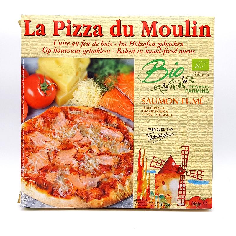La pizza saumon fumé de La Pizza du Moulin est un véritable délice pour les amateurs de saveurs marines. Garnie de saumon fumé de qualité, de crème fraîche légère, de mozzarella fondante et d’un léger zeste de citron, cette pizza combine le goût délicat du saumon fumé avec la douceur crémeuse de la sauce, le tout sur une pâte fine et croustillante.