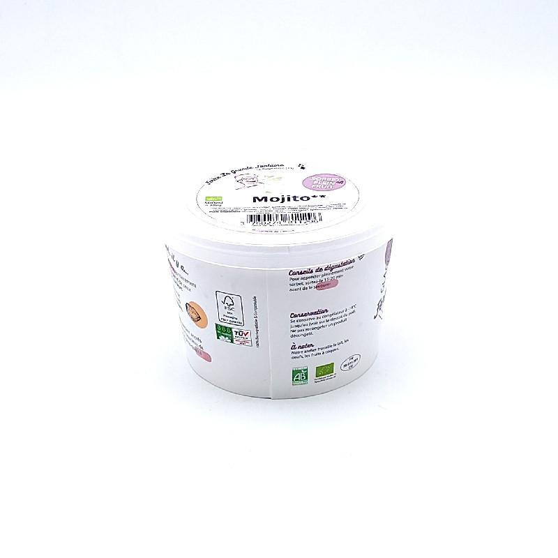 eau, citron vert (20%), sucre de canne blond équitable, compote de pomme maison, glucose, inuline d'agave, rhum blanc de Guadeloupe (5%), huile essentielle de menthe poivrée, épaississants : farine de caroube et farine de guar
