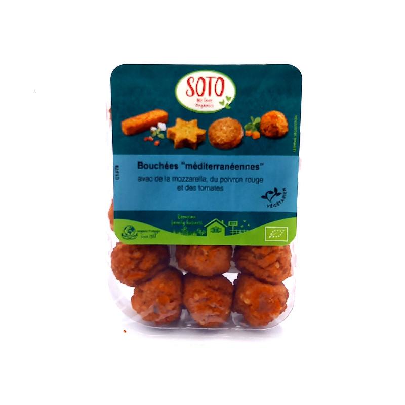 Bouchées méditerranéennes. Ingrédients issus de l'agriculture biologique. Convient au régime végétarien. Sans oeuf ni soja.