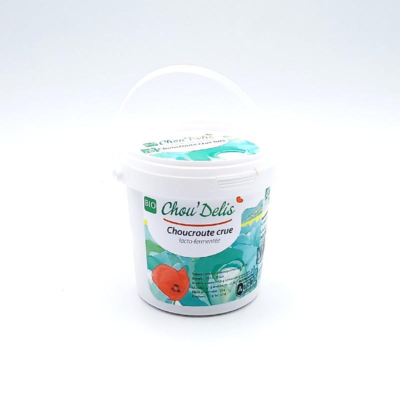 Chou blanc*, vin blanc* (2%), eau, oignons*, sel, baies de genièvre*, huile de tournesol*, épices*.