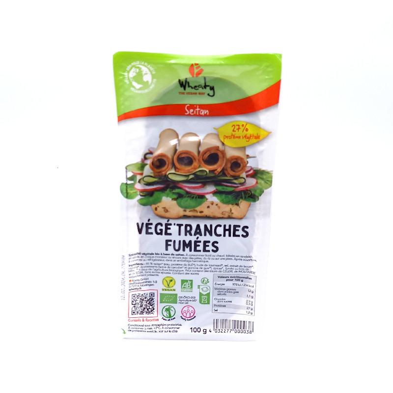 Charcuterie végétale avec un délicieux goût de fumé. Fait à base de protéines de blè. Sans lactose et sans oeuf. Plein de saveur, idéal pour vos repas froids, à assortir avec des crudités en sandwich ou en salade.
