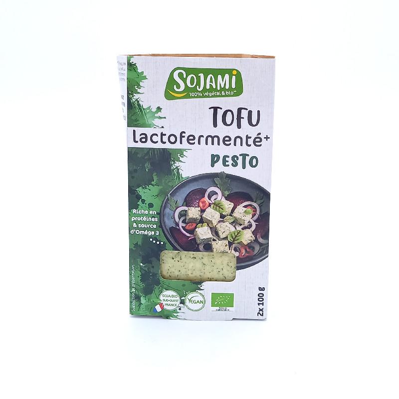 Tofu lactofermenté pesto. Ingrédients issus de l'agriculture biologique. A consommer comme du fromage ou de la viande