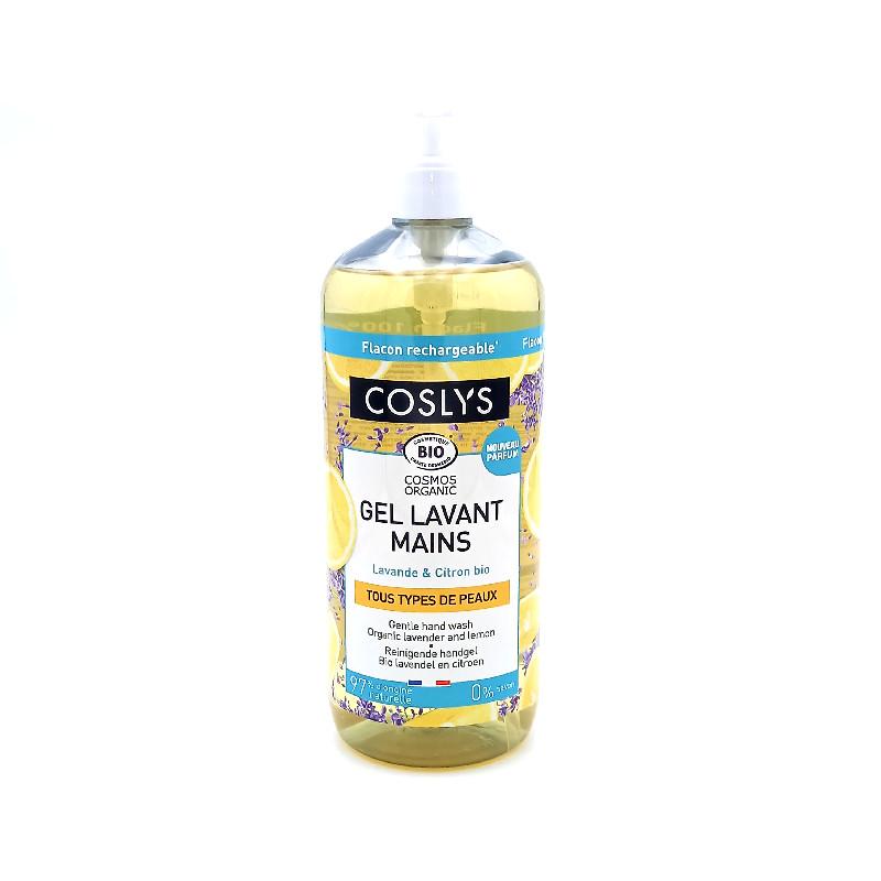 Le gel lavant mains lavande-citron Coslys nettoie tout en douceur vos mains sans les dessécher. Ce gel lavant pour les mains contient de l'eau florale de reine des prés bio aux vertus apaisantes, il laisse une délicate senteur de lavande et de citron.