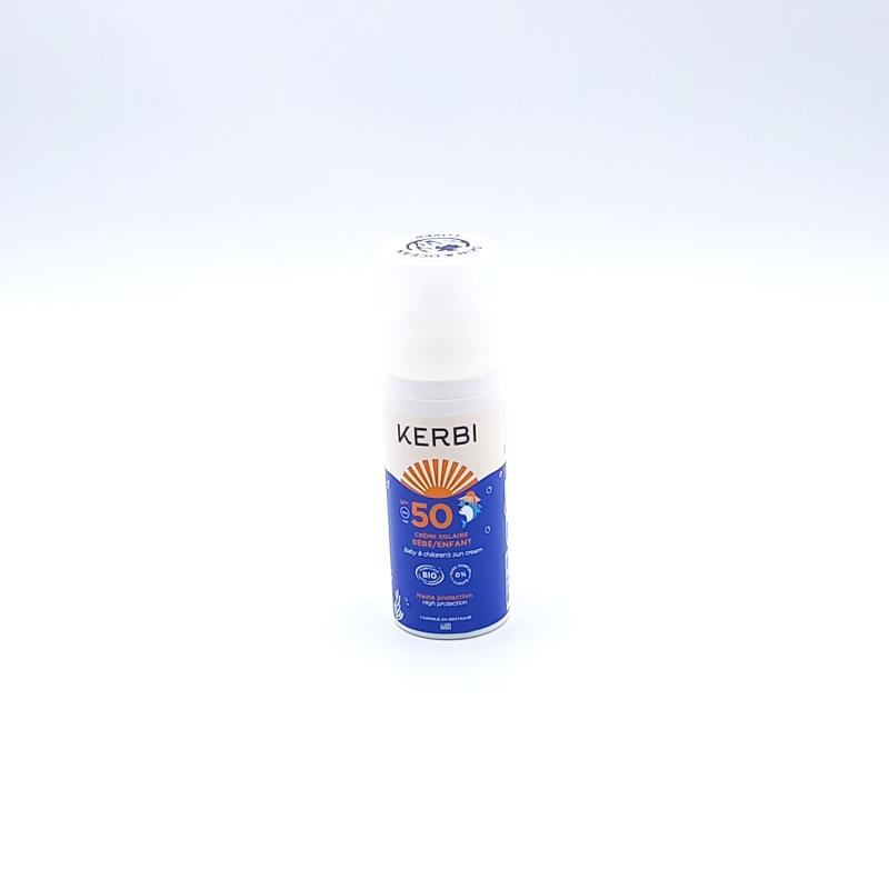 Découvrez la crème solaire Kerbi spf50 sans parfum bébés et enfants spécialement formulée pour les peaux sensibles en 100g. Cette crème protège efficacement le visage et le corps contre les UVA et les UVB dès l'application, grâce à son filtre minéral naturel et certifié BIO. Sa formule hydratante favorise également la synthèse de vitamine D. Non collante et ne laissant aucune trace blanche.