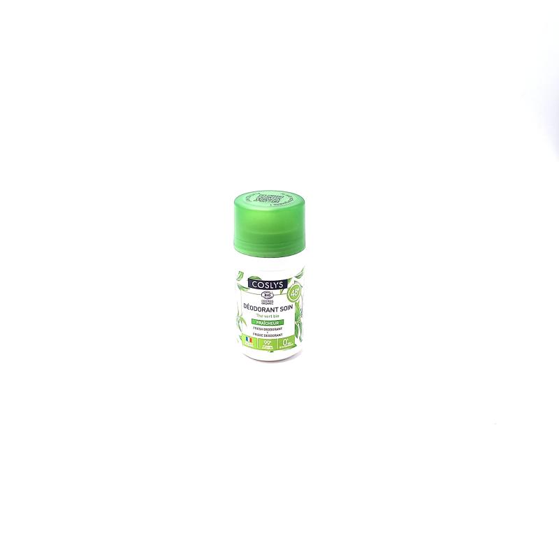 "Découvrez le Déodorant soin Fraîcheur de Coslys, une formule naturelle et bio, enrichie en extrait de thé vert, au parfum frais et mentholé. Il offre une efficacité 48H contre les mauvaises odeurs grâce à sa richesse en zinc, tout en apportant un soin qui respecte la peau délicate des aisselles.