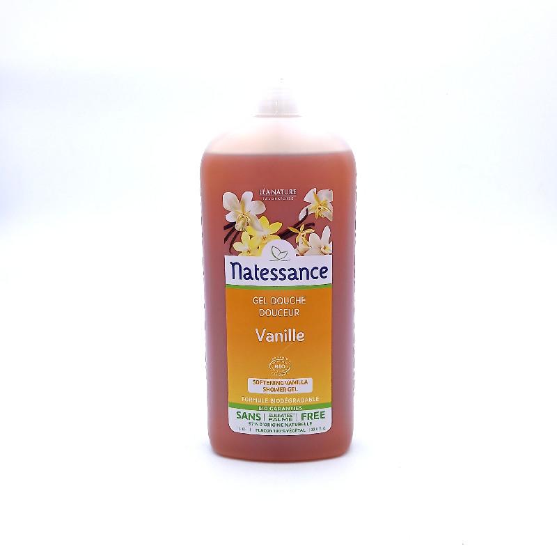 Gel douche douceur aux notes de vanille fruitée sans sulfite en flacon pompe 1 l