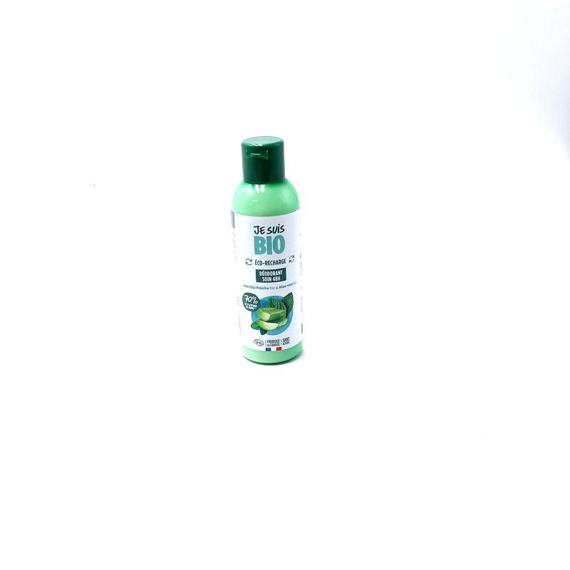 "Découvrez la Recharge déodorant menthe et aloe vera de Je Suis Bio, une formule douce qui associe des actifs anti-odeur 100% d'origine naturelle pour une efficacité 24h.