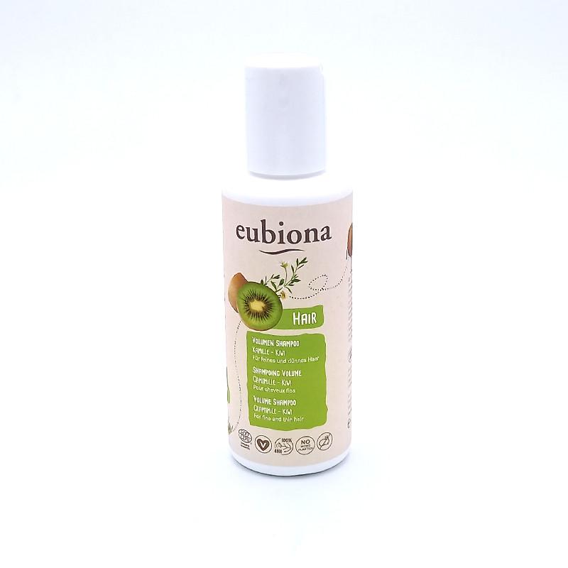 Le shampooing volume Eubiona Camomille Kiwi Bio à la camomille équilibre la régulation des graisses sur le cuir chevelu et le calme. L'acide de fruit du kiwi renforce la structure naturelle des cheveux.