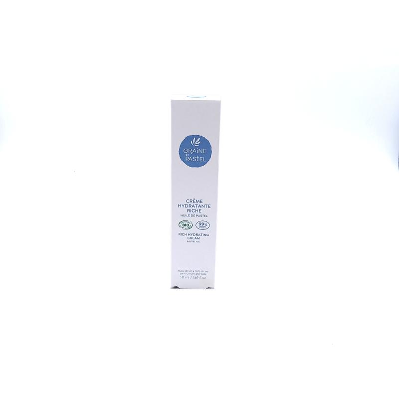 "La Crème Hydratante Riche à l'huile de pastel hydrate intensément la peau. Ce soin visage restaure le film hydro-lipidique cutané et renforce la fonction barrière de l’épiderme. Protégée du dessèchement, la peau est réconfortée et les tiraillements atténués.