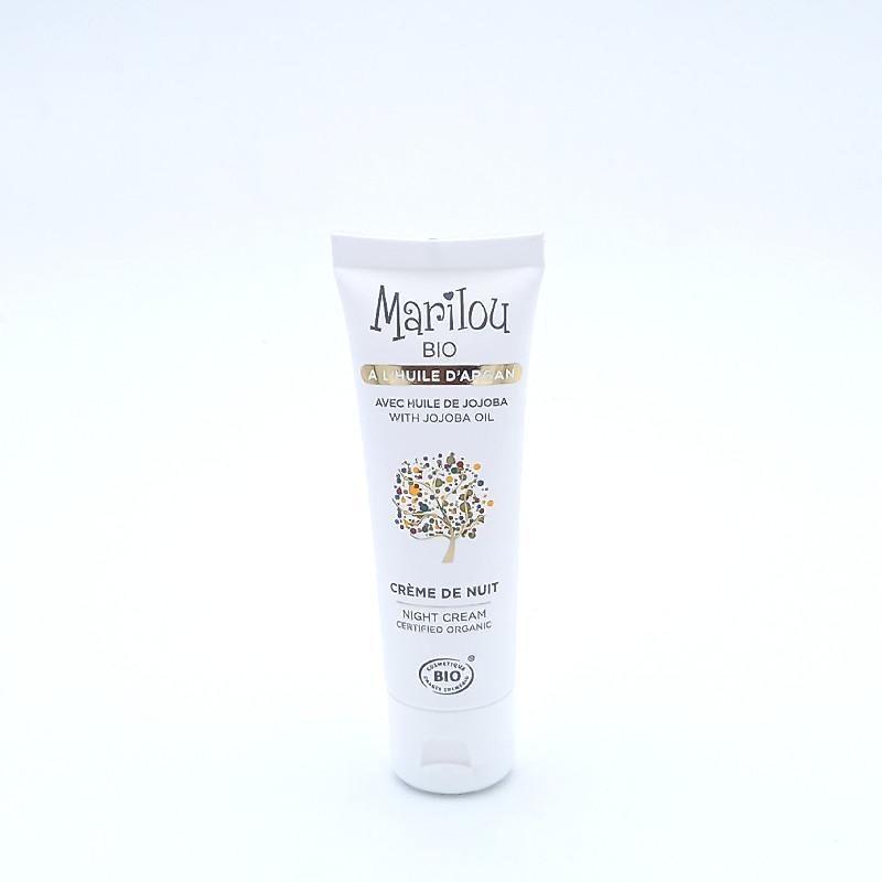 La Crème de Nuit à l'Huile d'Argan Marilou est enrichie en Huile d'Argan, Huile de Jojoba, et Beurre de Karité, pour leur propriétés nourrissantes, réparatrices et apaisantes. Cette crème de nuit profitera du moment de repos où les cellules se régénèrent pour offrir à votre peau les ingrédients qui l'aideront à être d'attaque pour démarrer une nouvelle journée. Elle est adapté aux peaux normales à sèches. Le conseil de la petite coopératrice bio: appliquez une noisette de produit le soir sur une peau propre, puis faire pénétrer la crème par de petits mouvements circulaires vers l’extérieur. pour une efficacité optimale il est recommandé de mettre la crème de jour huile d'argan Marilou.